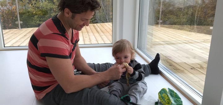 Även idag gick det ett gäng flyttlass med kartonger från Ewa och Christers garage ut till huset. Vi fick hjälp av Ante och Annlo. När det var dags för mellanmål fick barnen banan 🙂