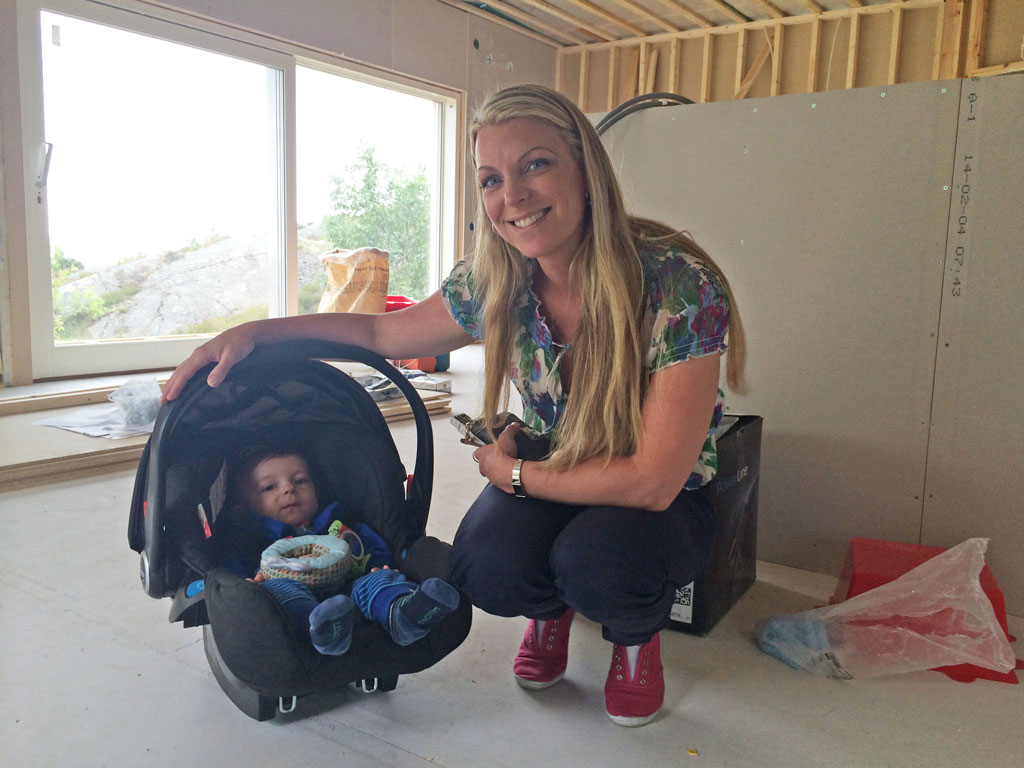 Efter samtal med Magnus, vår elektriker, kom vi idag ut till huset för att mäta ut vart vi vill ha våra handdukstorkare monterade i respektive wc/badrum. Det var även första gången som Jessica såg huset inifrån!