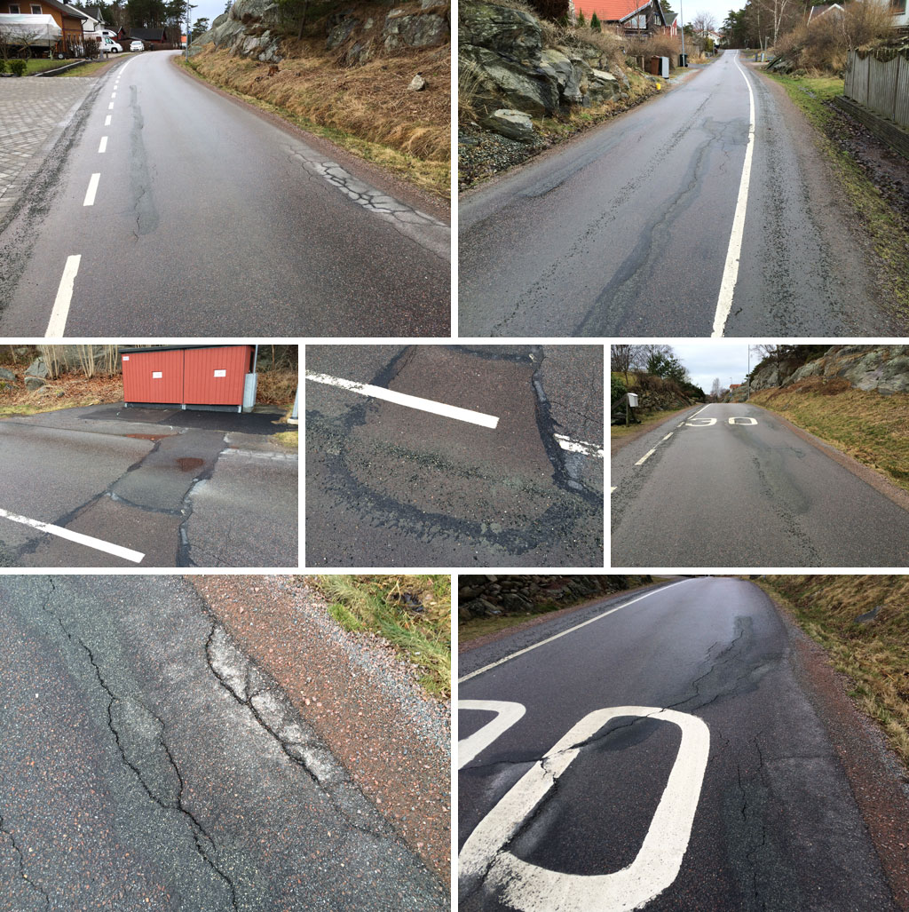 Idag mötte vi upp styrelseordförande Christian Olausson från samfällighetsföreningen i Andalen. Vi gick tillsammans från tomten och ut med hela Andalsvägen för att inspektera sprickor mm. Detta för att hålla koll på hur vägen ser ut innan ”våra” maskinister kommer och åker på den.